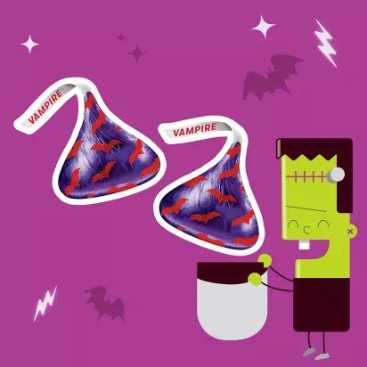 Bring HERSHEYS KISSES Dracula candies to your next vampire-themed movie marathon for the perfect Halloween candy and film pairing Red strawberry-flavored creme encased in classic. The Hersheys Vampire Chocolate Kisses also come wrapped in a bat-print foil. Unfortunately the dark chocolate variety.
